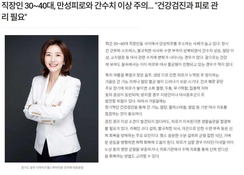 * 더와이즈헬스케어의원 전지혜 대표원장님 직장인 건강검진 및 피로관리 관련 인터뷰! *